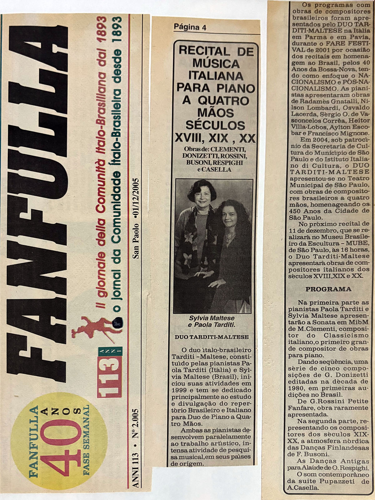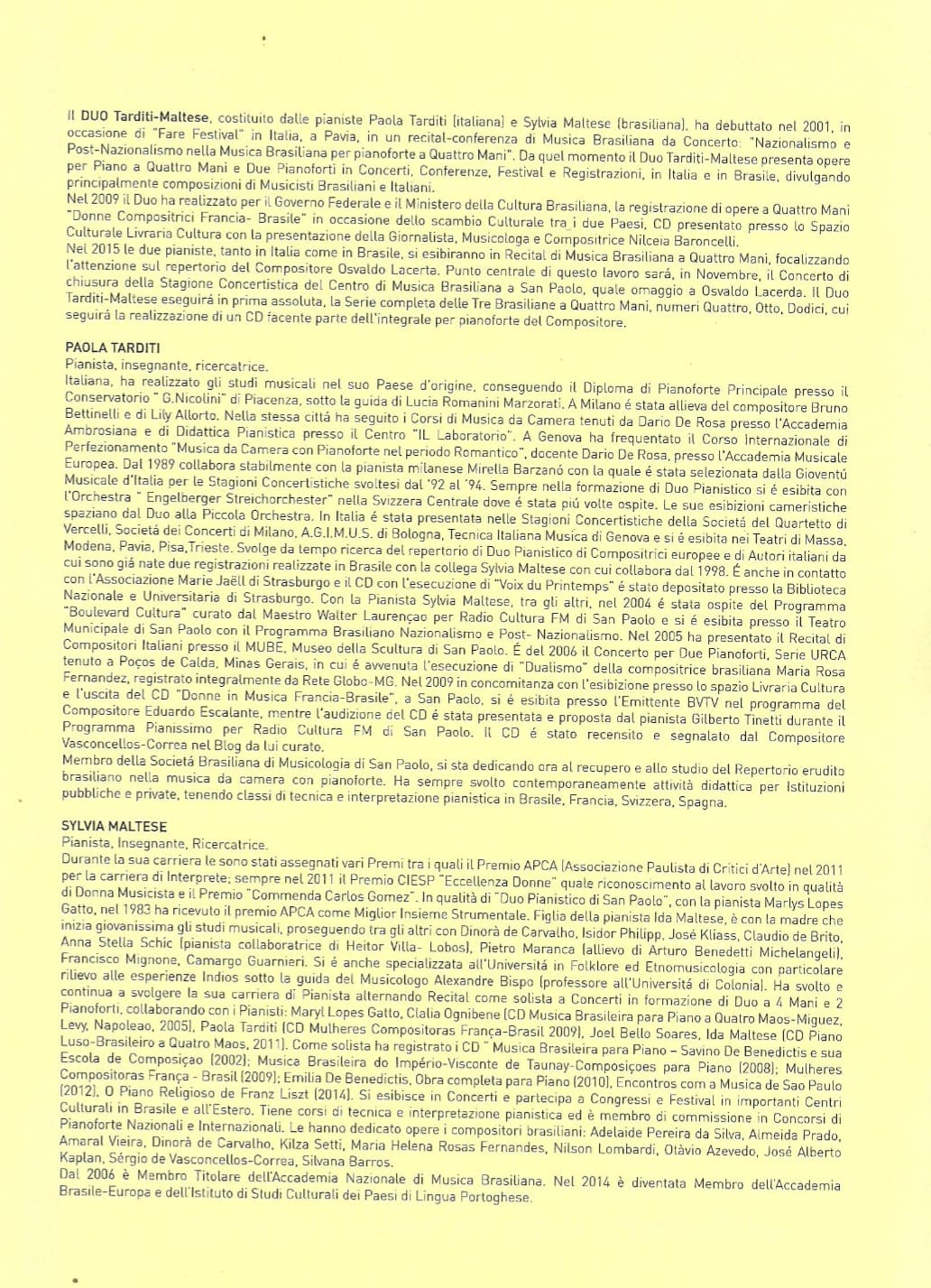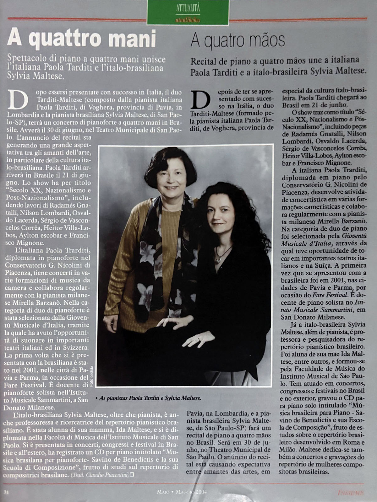 Pianistas Intérpretes: Paola Tarditi e Sylvia Maltese