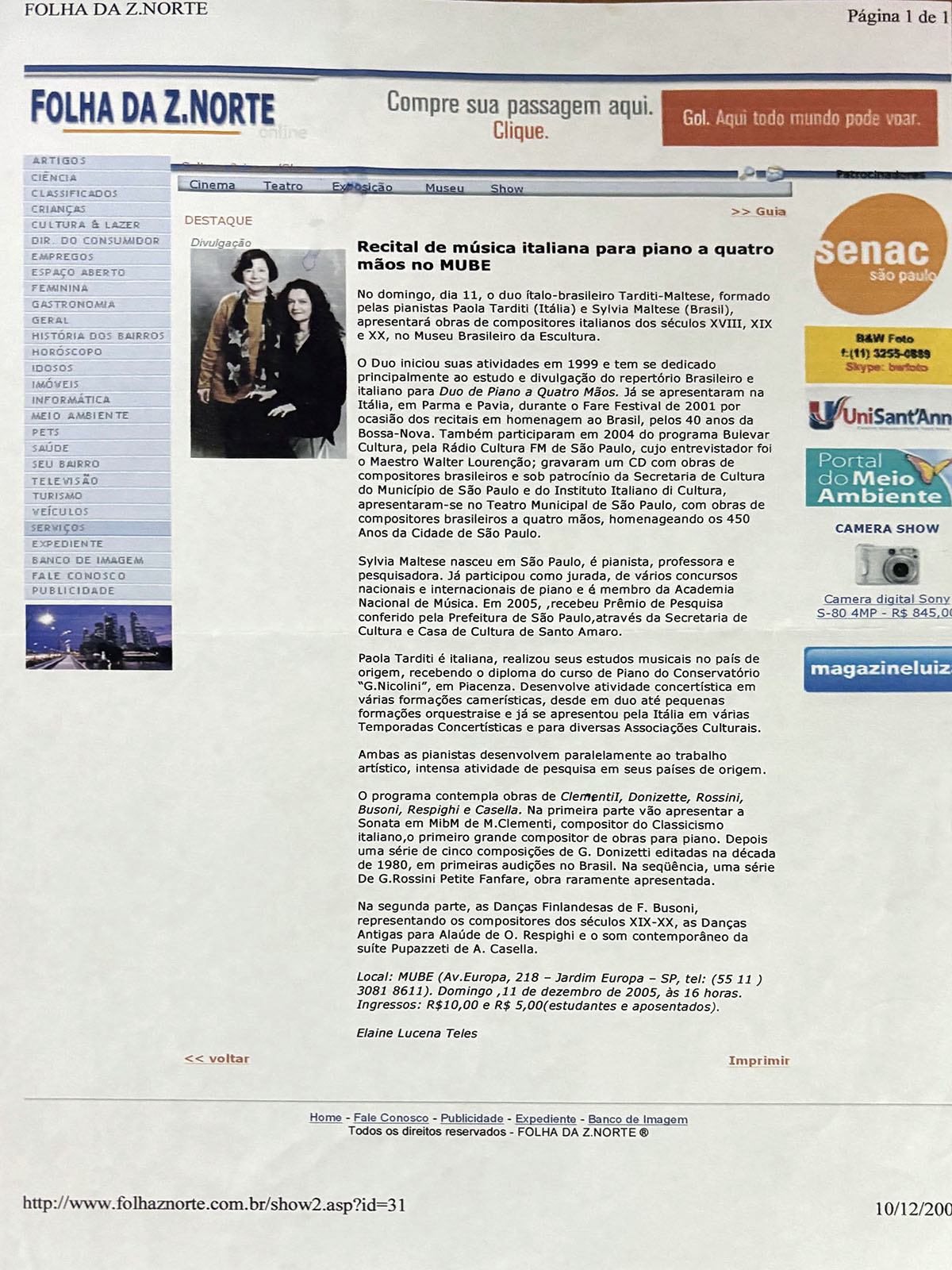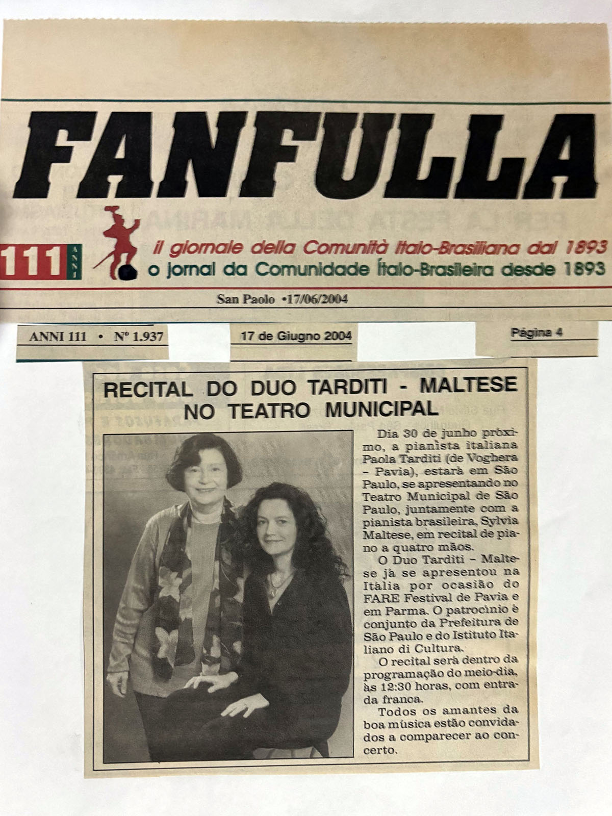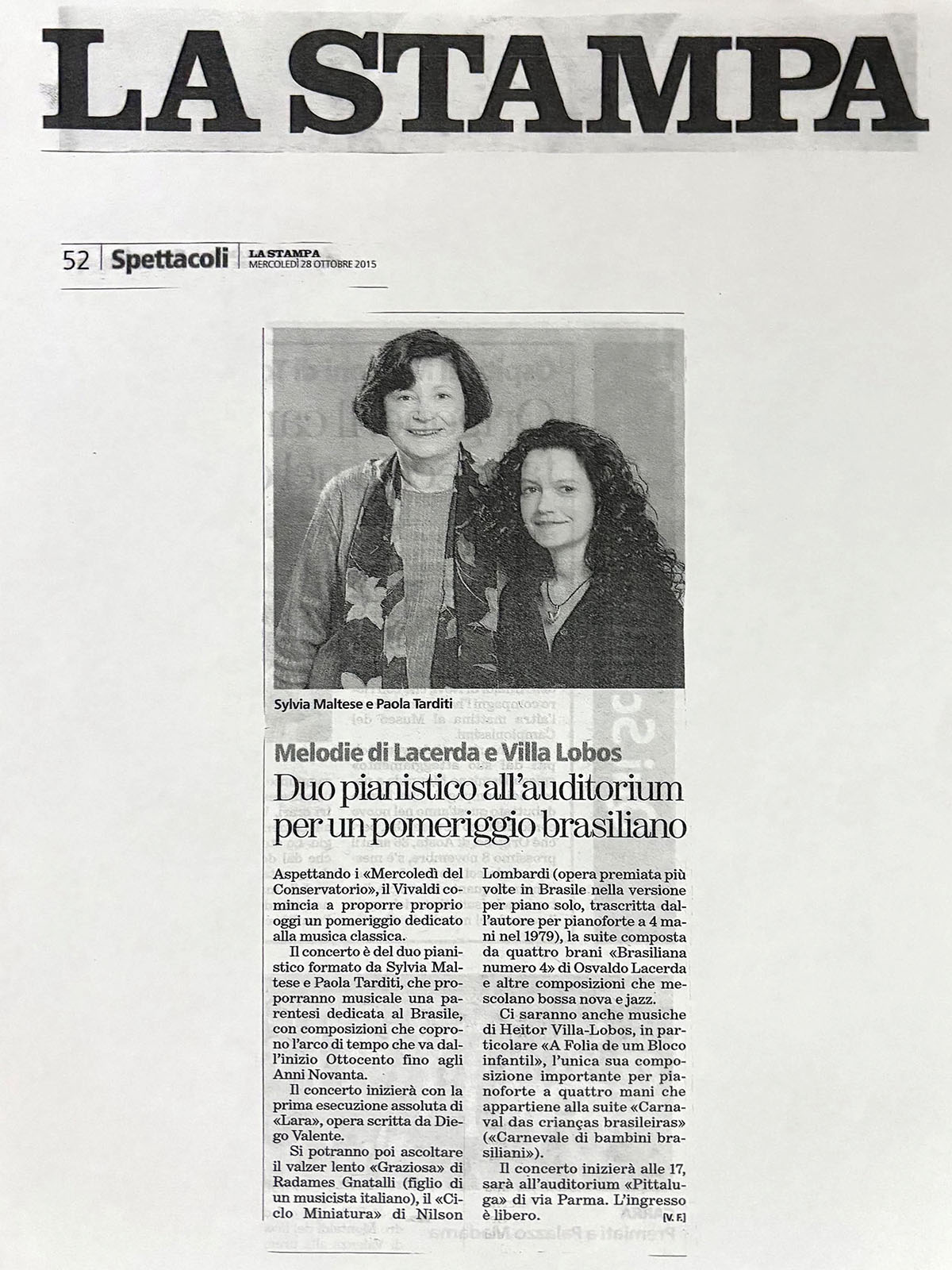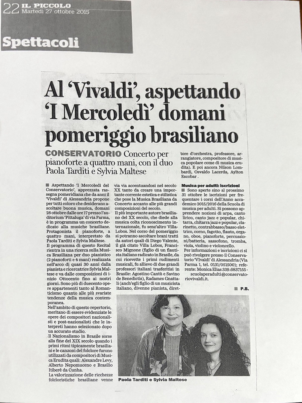 Pianistas Intérpretes: Paola Tarditi e Sylvia Maltese